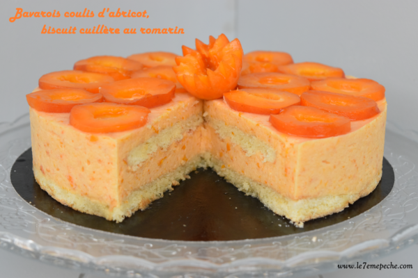 Il est frais et léger composé d’un biscuit cuillère au romarin, d’une crème bavaroise à l’abricot et d’abricot frais.
