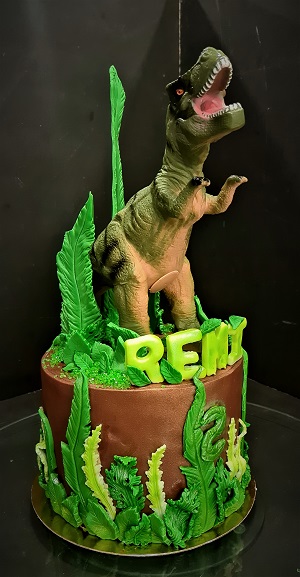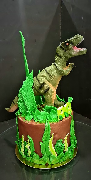 Célébrer un anniversaire sur le thème de l’ère jurassique, cela commence par le gâteau :