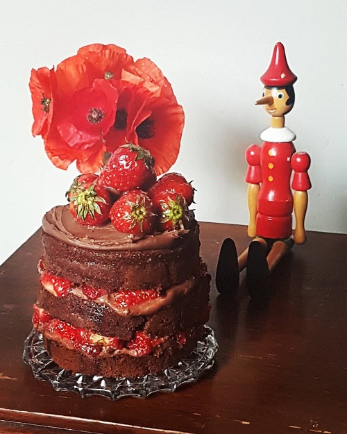 Ici, j’ai choisi un molly cake au chocolat, fourrĂ© d’une ganache chocolat et fraises fraĂ®ches.