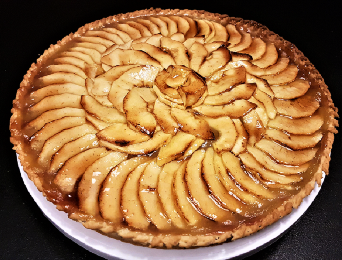 Elle se pâtisse de mille et une façons. Avec de la compote de pomme, de la cannelle, de la crème pâtissière ou crème d’amade…
